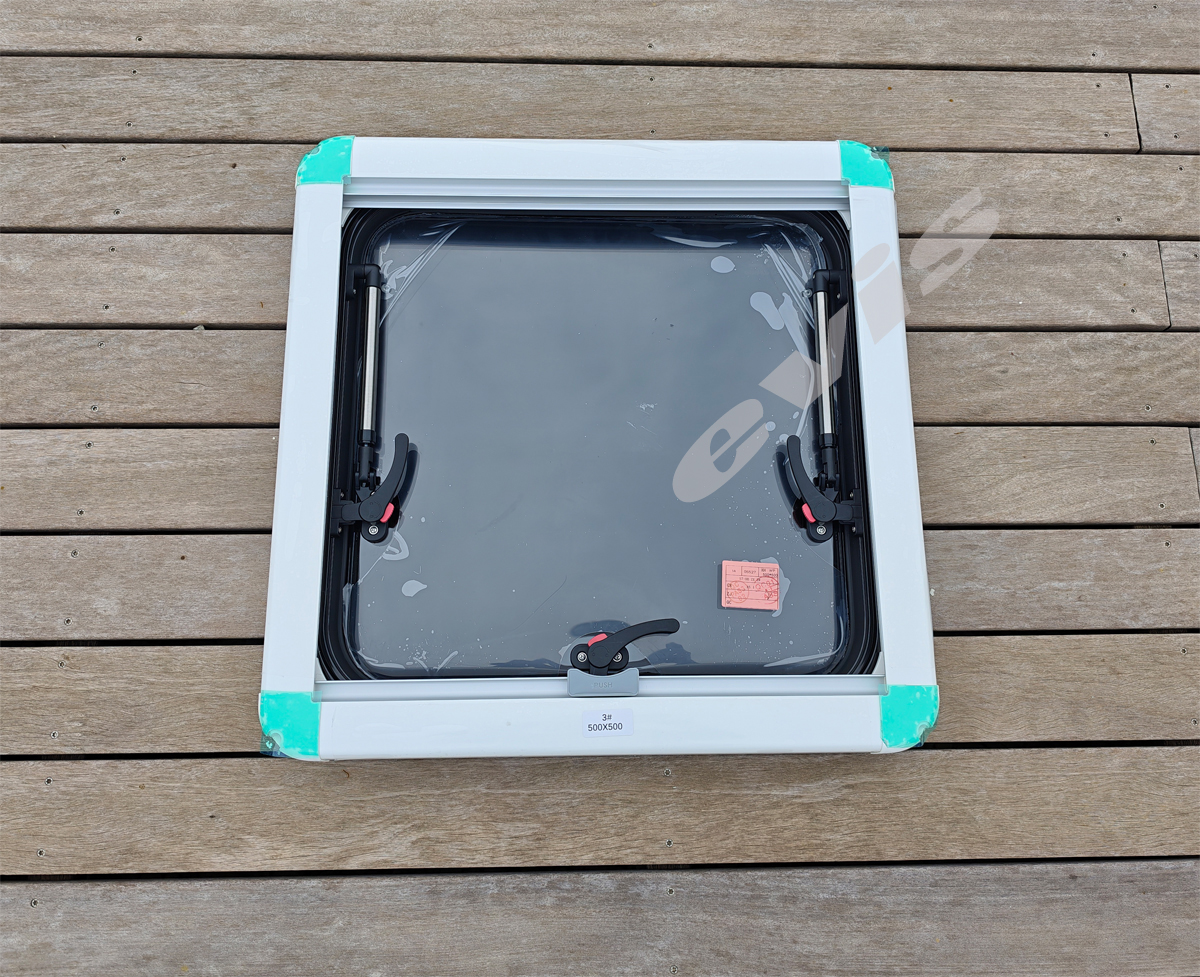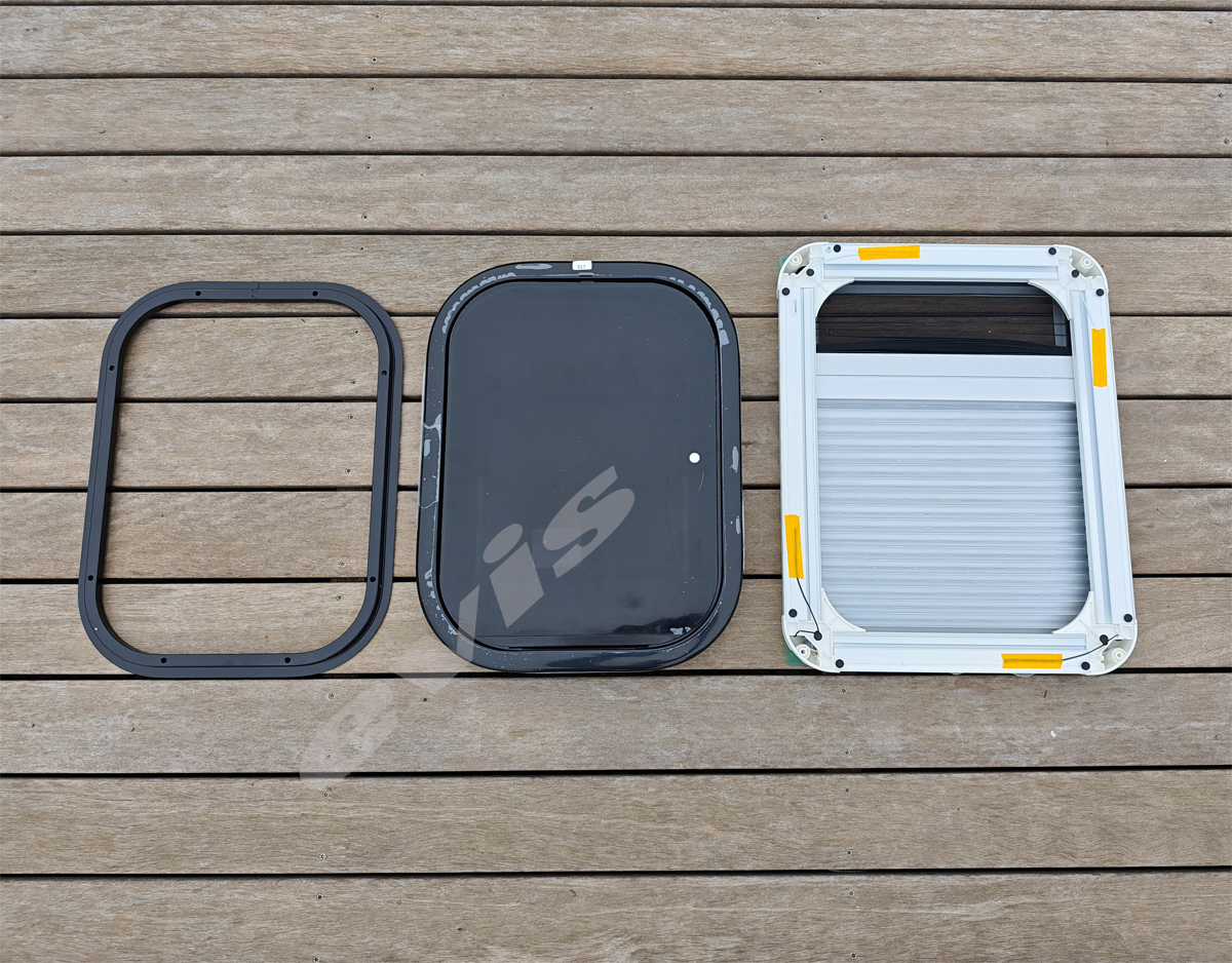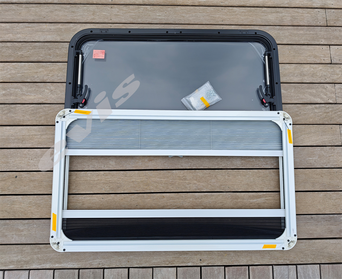 Prozori su izrađeni od aluminijskog okvira i pleksiglasa (akril), što osigurava malu težinu, visoku otpornost i dug vijek trajanja — ključne karakteristike za mobilne objekte i putovanja .
