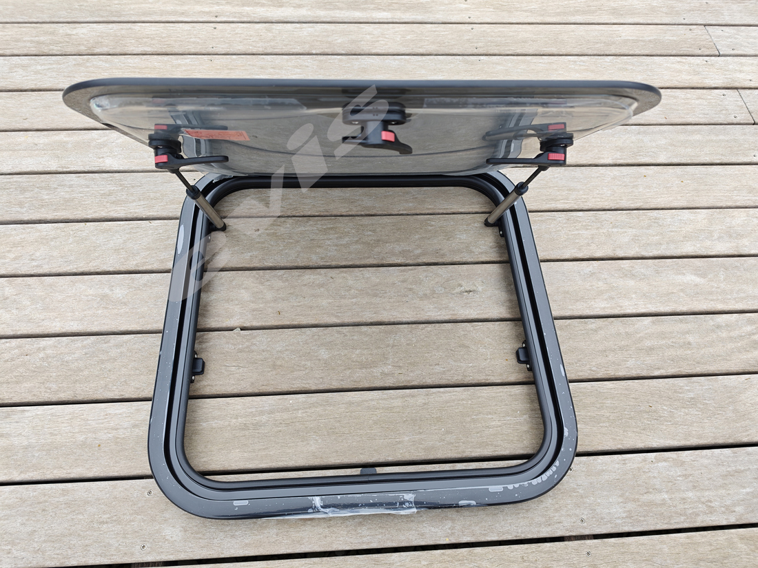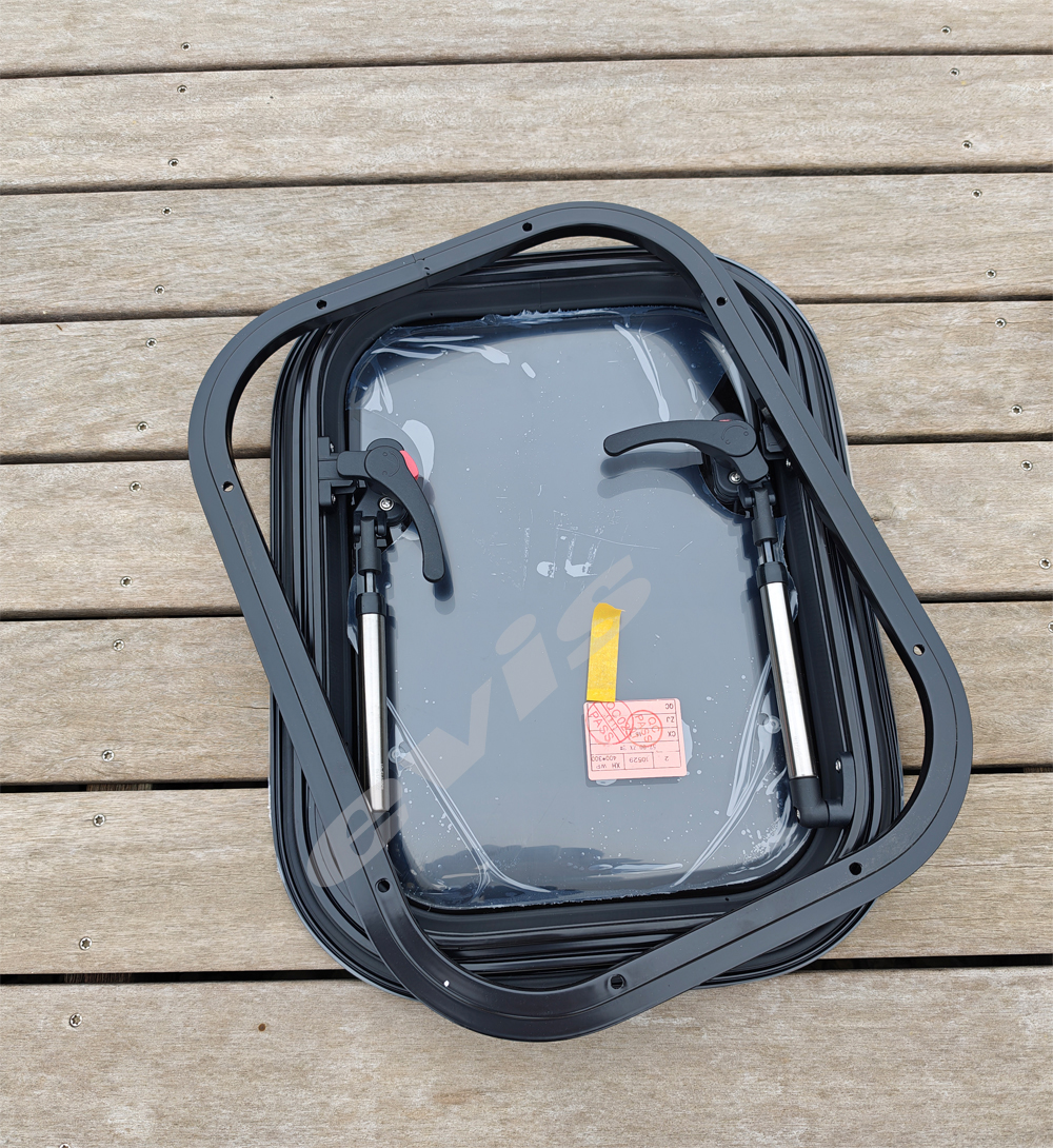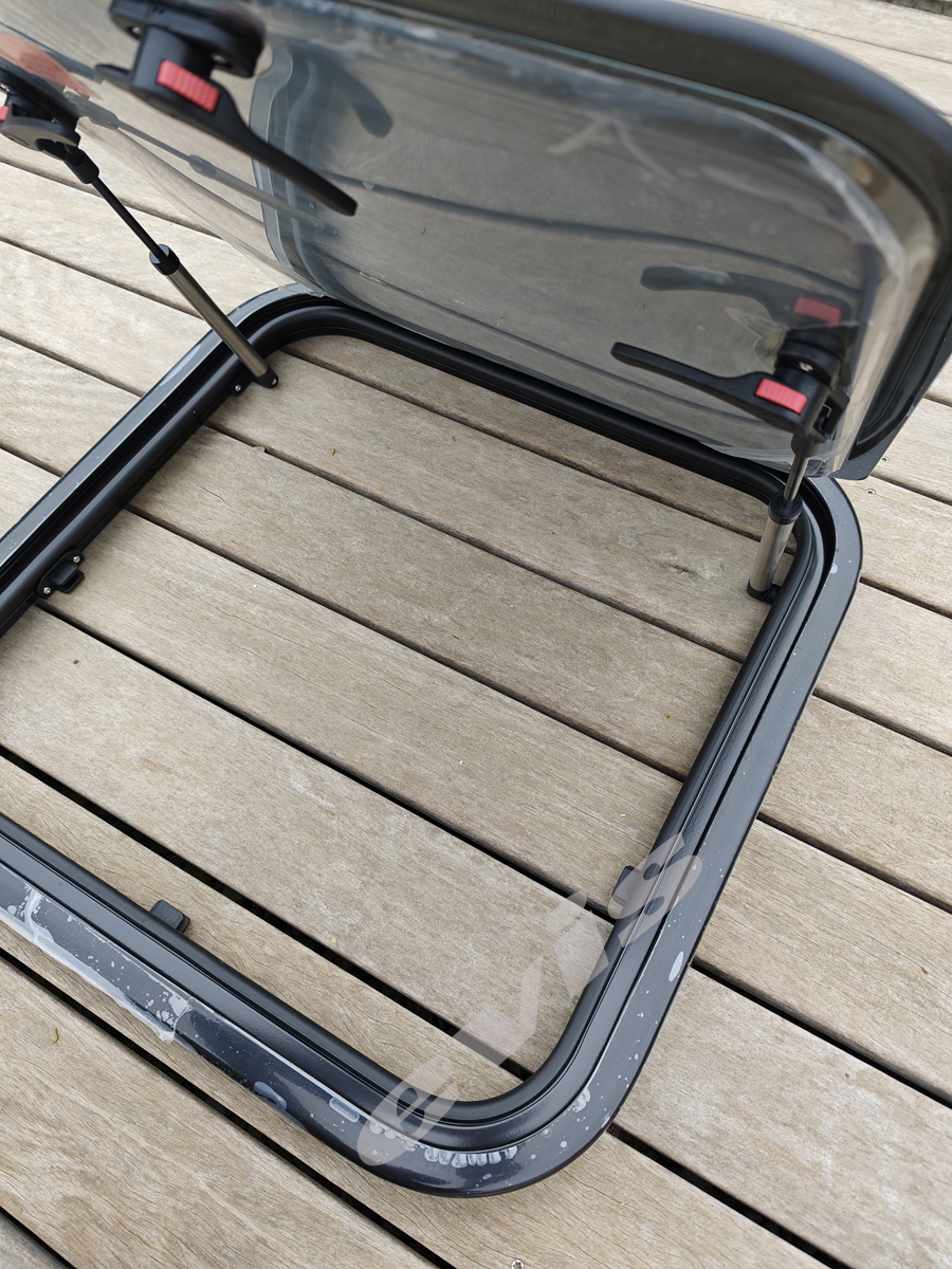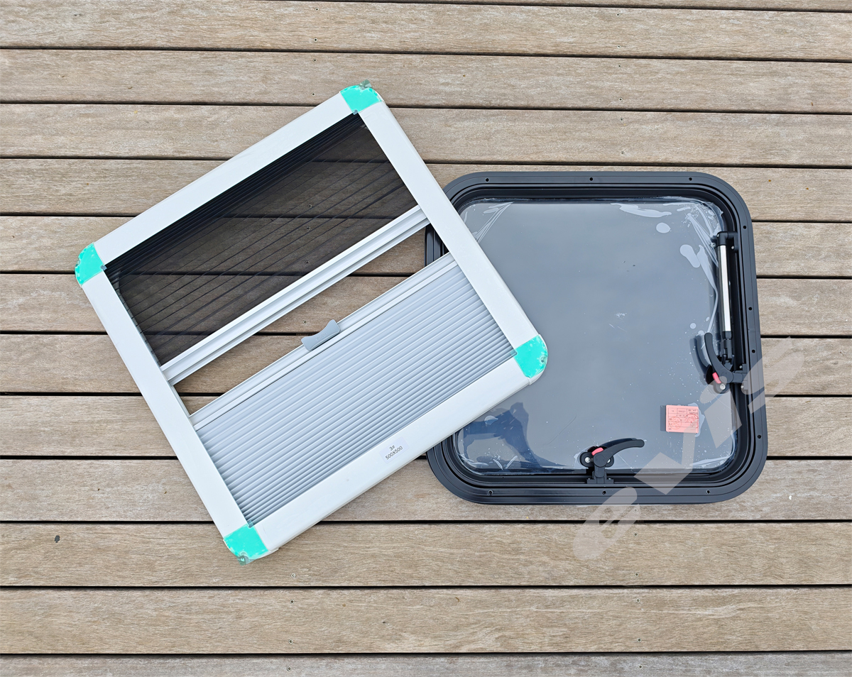 Prozori su izrađeni od aluminijskog okvira i pleksiglasa (akril), što osigurava malu težinu, visoku otpornost i dug vijek trajanja — ključne karakteristike za mobilne objekte i putovanja .